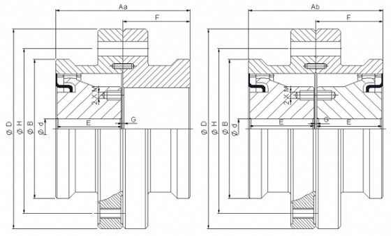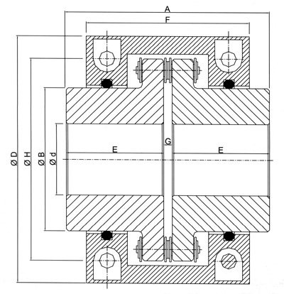 FLANGES MUST BE MADE OF THE MATERIAL AISI 1040, THE TIRE CONSISTS OF 5 RUBBER LAYERS.