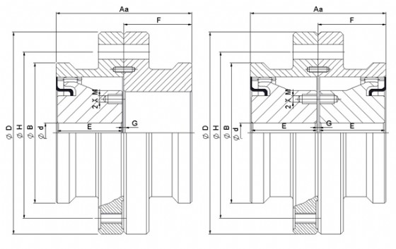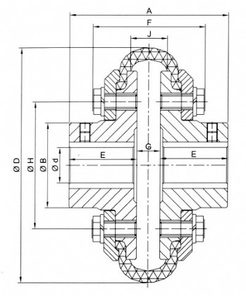 Note: COUPLING HEADS ARE MADE OF AISI 1040 FORGING MATERIAL AND ENVELOPES ARE MADE OF CAST POLYAMIDE MATERIAL