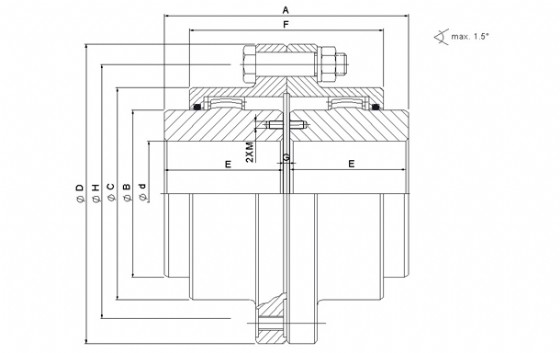 Note: FLANGES MUST BE MADE OF THE MATERIAL AISI 1040, THE TIRE CONSISTS OF 5 RUBBER LAYERS.